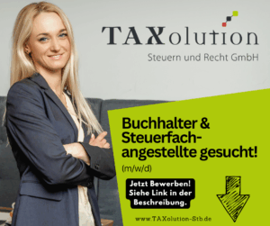Wir, die TAXolution Steuern & Recht GmbH, suchen Buchhalter und Steuerfachangestellte, die mit uns die Steuerwelt rocken wollen! Ob frisch aus der Ausbildung oder mit langjähriger Erfahrung – bei uns findest du deinen Platz, um zu wachsen, dich weiterzuentwickeln und Spaß an der Arbeit zu haben.